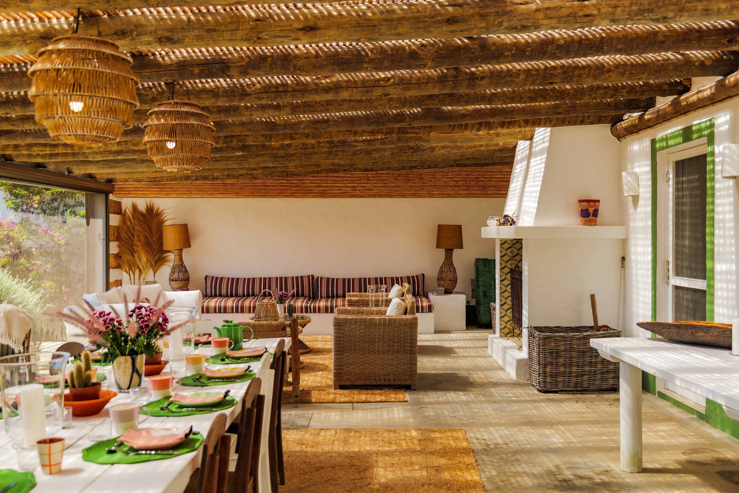2 double bedrooms opening onto the courtyard garden, each with ensuite bathrooms with double basins.